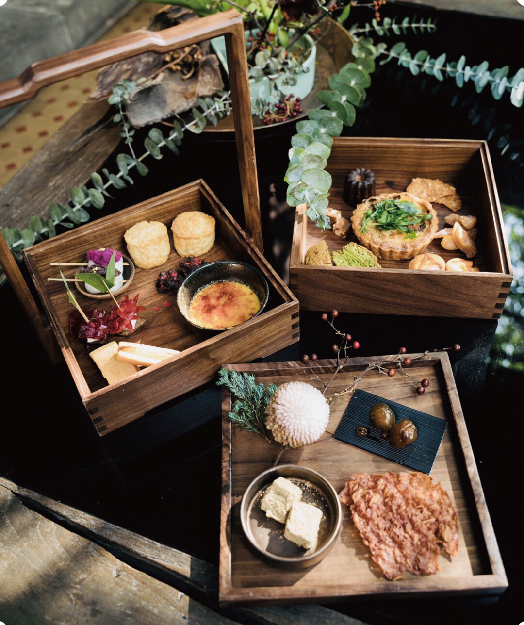 我們採預約制預訂座位,穿過宅邊窄廊,繼續走進去,途經夜晚限定的QUANDO bar,來到有著老實木家俱與地磚的廳堂,宅門外有約35坪大的庭院隱藏於此。